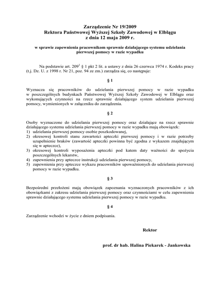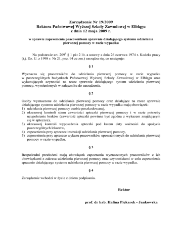 Zarządzenie Nr 19/2009 Rektora Państwowej WyŜszej Szkoły