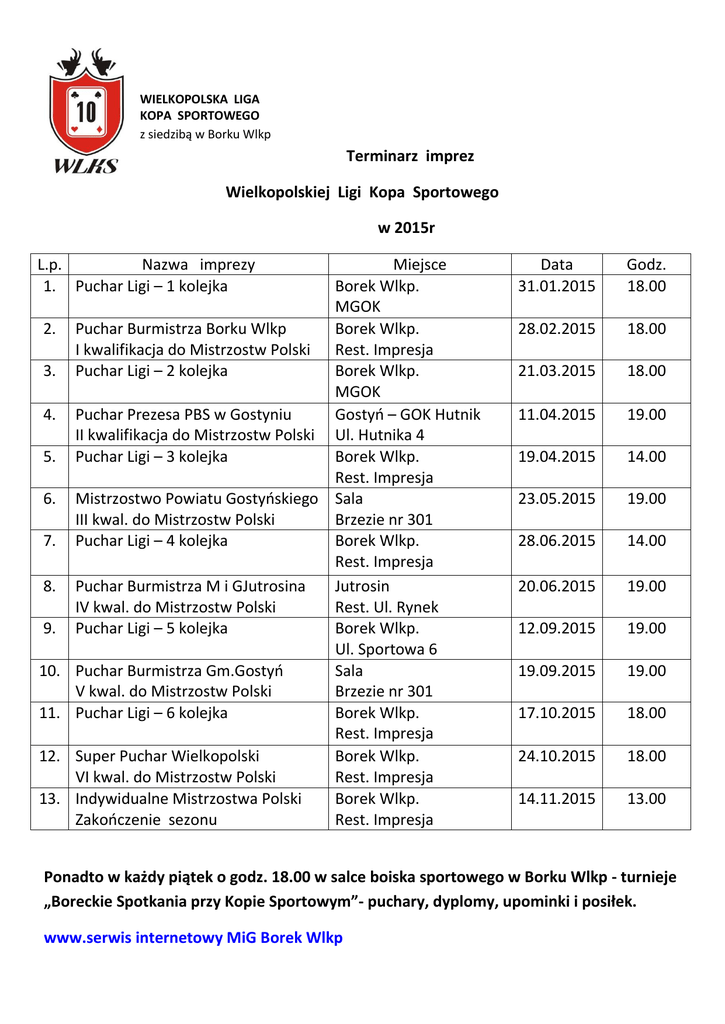 Terminarz imprez Wielkopolskiej Ligi Kopa Sportowego w 2015r L.p.