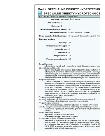 Moduł: SPECJALNE OBIEKTY HYDROTECHNICZNE SPECJALNE