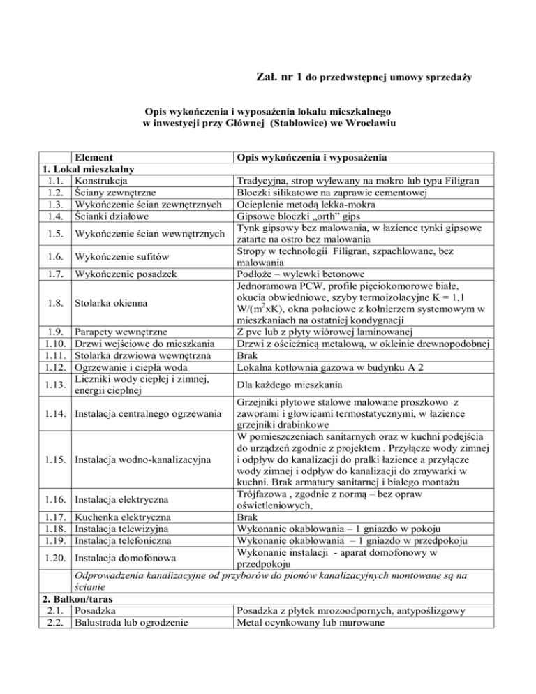 Zał. nr 1 do przedwstępnej umowy sprzedaży Opis