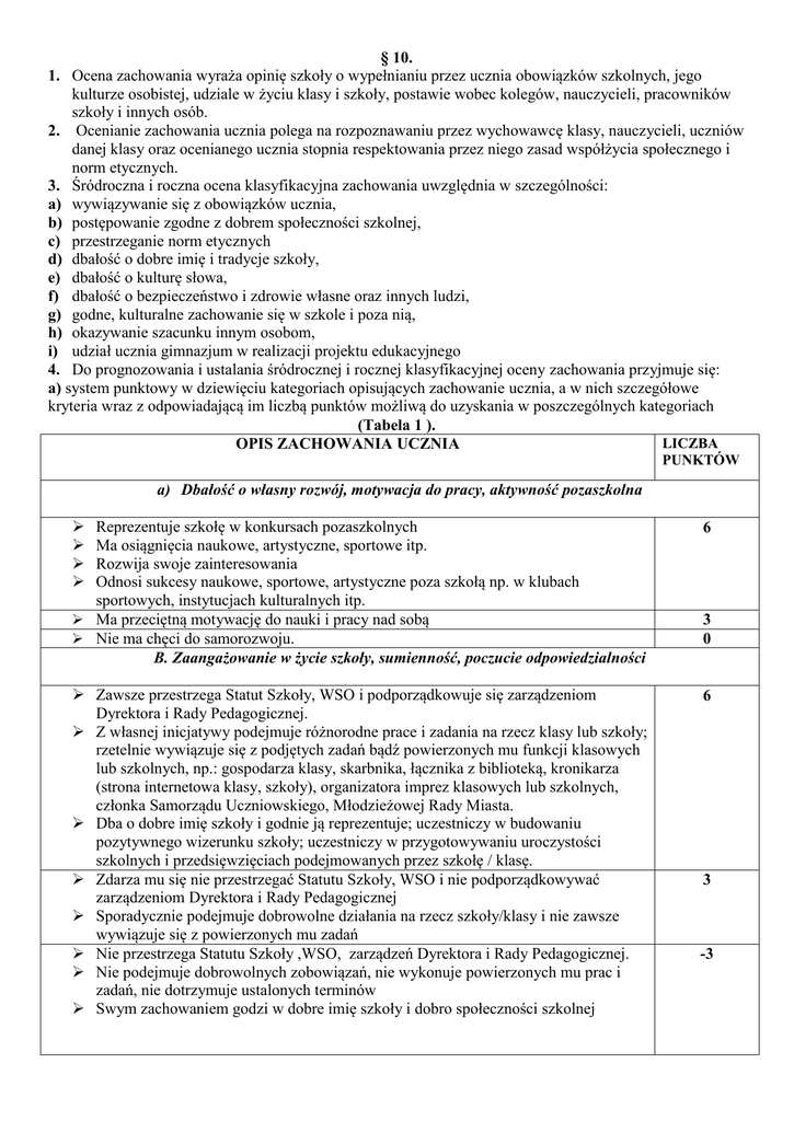 § 10. 1. Ocena zachowania wyraża opinię szkoły o wypełnianiu