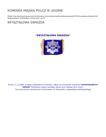 KOMENDA MIEJSKA POLICJI W LESZNIE KRYSZTAŁOWA GWIAZDA