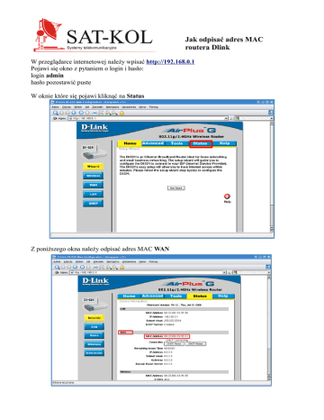 Jak odpisać adres MAC routera Dlink - Sat-Kol