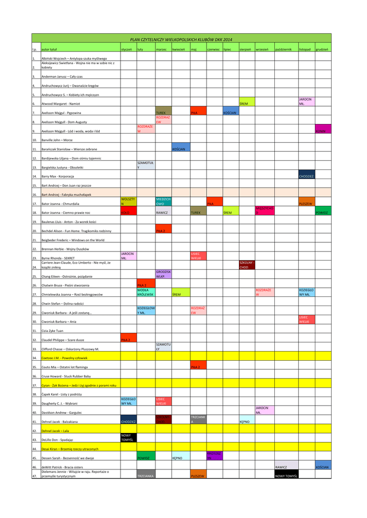 PLAN CZYTELNICZY WIELKOPOLSKICH KLUBÓW DKK 2014