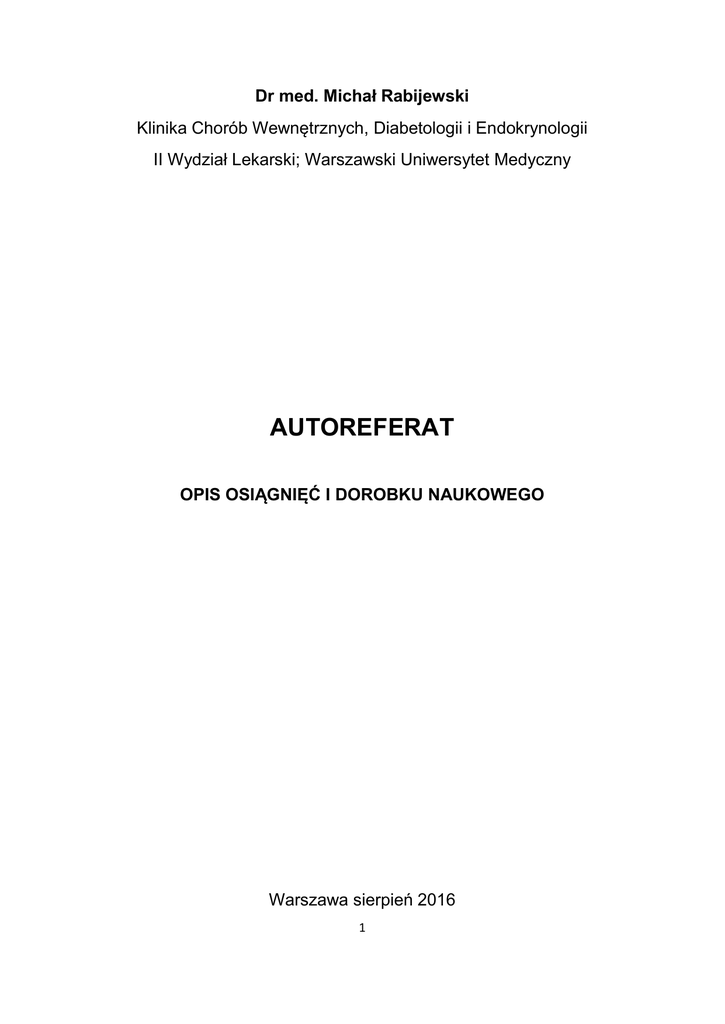 Autoreferat dr M. Rabijewski - II Wydział Lekarski
