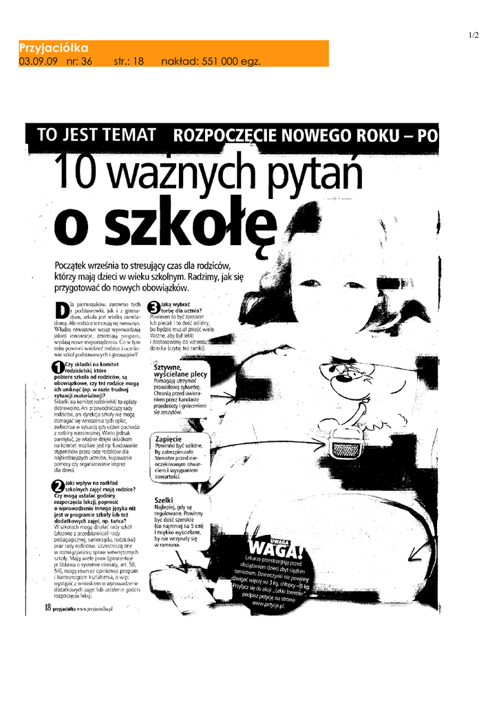 Przyjaciółka 03.09.09 nr: 36 1/2 str.: 18 nakład: 551 000 egz. Przyjaciółka 03.09.09 nr: 36 2/2 str.: 18 nakład: 551 000 egz.