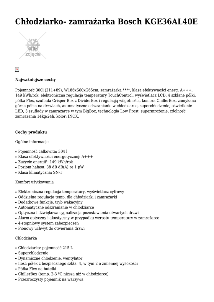 Chłodziarko- zamrażarka Bosch KGE36AL40E