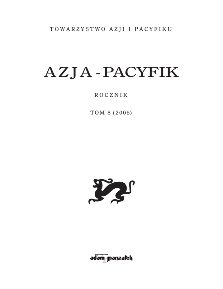 TOWARZYSTWO AZJI I PACYFIKU A Z J A - PACYFIK ROCZNIK T O M 8 ( 2005) RADA PROGRAMOWA Waldemar J. Dziak, Krzysztof Gawlikowski, Władysław Góralski, Sławoj Szynkiewicz, Stanisław Zapaśnik REDAKCJA NAUKOWA Adam W. Jelonek, Małgorzata Ławacz Redakcja Filip Kubicz-Andryszak © Copyright by Wydawnictwo Adam Marszałek © Copyright by Towarzystwo Azji i Pacyfiku Toruń, Warszawa 2005 ISSN 1643-692X ISBN 83-7441-075-2 ADRES REDAKCJI TOWARZYSTWO AZJI I PACYFIKU ul. Lubicka 44, 87-100 Toruń, fax. 566485070 Prenumeratę prowadzi Towarzystwo Azji i Pacyfiku. Zamówienia prosimy kierować na adres Redakcji. Prenumeratorzy otrzymują zniżkę 10% ceny katalogowej. Prenumerata zagraniczna wyższa o 100% plus koszty przesyłki. Wpłaty prosimy kierować na konto Towarzystwa: KBSA O. w Toruniu 16 1500 1751 1217 5001 3215 0000 The cost of annual subscription (one issue) is US $23.00, including postage. Payments should be sent to Asia-Pacific Society: Towarzystwo Azji i Pacyfiku, account: KBSA O. w Toruniu 16 1500 1751 1217 5001 3215 0000 WYDAWNICTWO ADAM MARSZAŁEK, 87-100 Toruń, ul. Lubicka 44 tel./fax (0-56) 648-50-70, (0-56) 660-81-60, e-mail: [email protected] DRUKARNIA nr 2, ul. Warszawska 52, 87-148 Łysomice, tel. (0-56) 659-98-96 3 Azja–Pacyfik TREŚĆ ZESZYTU Od redakcji ............................................................................................................ 7 HISTORIA J. Rowiński, J. Szczudlik J. Kolmaš Z historii kontaktów polsko-chińskich (do 1945 roku) .... 9 Akomodacja – poprzedniczka aggiornamento? (Na przykładzie misji katolickich w Chinach w XVI–XVIII w.) ............................................................ 43 SPOŁECZEŃSTWO M. Pietrasiak K. Pawlak M. Lipska Reformy oświatowe w Wietnamie. Zarys uwarunkowań ........................................................ 52 System wartości na Tajwanie. Jaka „tradycja”? Jaka „nowoczesność”? .................................................... 64 Japoński styl negocjacyjny .................................................90 POLITYKA C. Earl, A. Fforde Spice is nice. Australia and Asia – changing attitudes, changing practices......................................................... 104 K. Grzybowski Filipiny – zarys historii najstarszej demokracji w Azji ... 126 A. Zamaraeva Interesy Chin w Azji Centralnej.................................... 143 A. P. Olechowski Kolej do Tybetu – szansa czy zagrożenie?.................... 161 K. Kubicz-Andryszak Modyfikacja stanowiska Chin wobec problemu globalizacji .................................................................... 166 ROZMOWA R. Zalski Rozmowa z Chien Fu, byłym sekretarzem Czang Kaj-szeka, politykiem, dyplomatą, członkiem rządu Tajwanu ............................................................... 172 WSPOMNIENIE E. Pałasz-Rutkowska Profesor Wiesław Kotański (1915–2005) – wybitny uczony, japonista, wychowawca pokoleń ..................... 188 4 Azja–Pacyfik MATERIAŁY, INFORMACJE B. Zakrzewski K. Lewandowska M. Ławacz Pasje profesora Kolmaša ............................................... 195 Chińczycy w kosmosie ................................................. 197 Stosunki Polski z krajami Azji i Pacyfiku (grudzień 2004–listopad 2005) ..................................... 205 RECENZJE I OMÓWIENIA K. Gawlikowski B. Góralczyk J. Szczudlik J. Rowiński R. Zalski K. Kubicz-Andryszak Personalny wymiar dyplomacji chińskiej ..................... 208 Chiny – rosnące supermocarstwo ................................. 212 Świadkowie historii ...................................................... 219 Polacy w Chinach ......................................................... 225 Chiang Ching-kuo – syn generalissimusa ..................... 230 Świat według Mao Zedonga ......................................... 234 Nasi autorzy ...................................................................................................... 237 Abstracts – streszczenia .................................................................................... 242 Azja–Pacyfik 5 CONTENTS From the Editors ................................................................................................... 7 HISTORY J. Rowiński, J. Szczudlik J. Kolmaš From the history of Polish-Chinese relations (until 1945) ....................................................................... 9 Accomodation – the predecessor of aggiornamento? (The example of catholic missions in China in 16th and 17th century) ............................................................. 43 SOCIETY M. Pietrasiak K. Pawlak M. Lipska The educational reforms in Vietnam. Some conditions .... 52 The values system in Taiwan. What about „traditions”? What about „modernity”? ............................................... 64 The Japanese way of negotiations ......................................90 POLITICS C. Earl, A. Fforde Spice is nice. Australia and Asia – changing attitudes, changing practices......................................................... 104 K. Grzybowski The Philippines – an outline of the history of the oldest democracy in Asia .................................... 126 A. Zamaraeva Chinese interests in Central Asia .................................. 143 A. P. Olechowski Railway to Tybet – an opportunity or a threat?............. 161 K. Kubicz-Andryszak Modification of China’s stance on globalization .......... 166 INTERVIEW R. Zalski Interview with Mr. Chien Fu, the former secretary of Chiang Kai-shek, politician and member of the Taiwanese government ....................................... 172 IN MEMORIAL E. Pałasz-Rutkowska Professor Wiesław Kotański (1915–2005) – distinguish scholar in the Japanese Studies, educator of generations ................................................ 188 6 Azja–Pacyfik MATERIALS, INFORMATION B. Zakrzewski K. Lewandowska M. Ławacz Passions of Professor Kolmaš .............................
