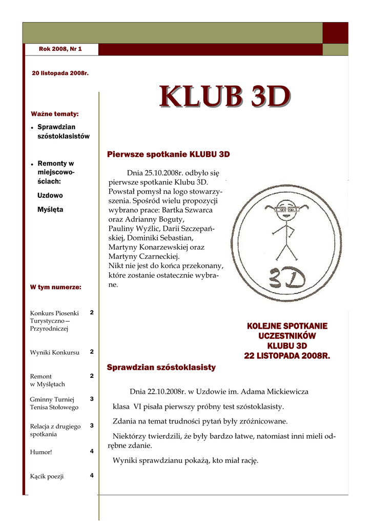 KLUB 3D - Szkoła Podstawowa im. Adama Mickiewicza w Uzdowie