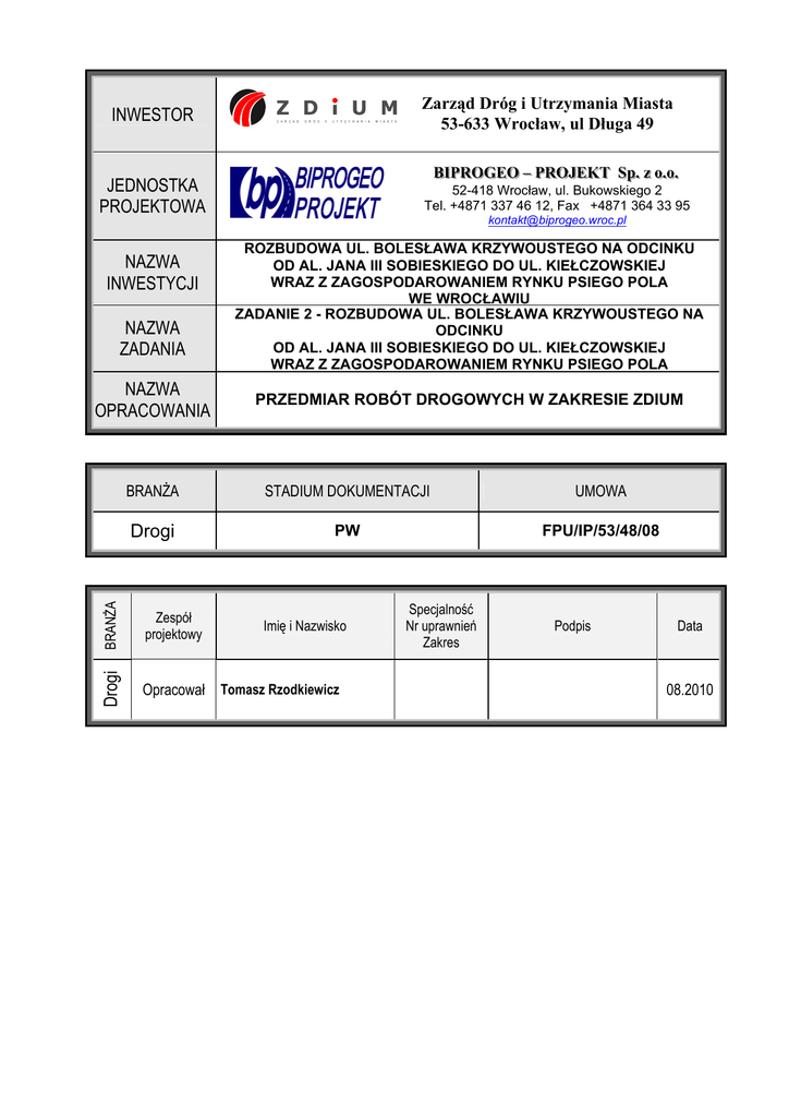 Przedmiar robót- drogowych w zakresie ZDIUM