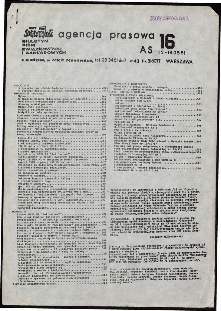 Kto się boi prasy związkowej? - Włodzimierz ZbinieRejestracja NSZZ RI "Solidarność"