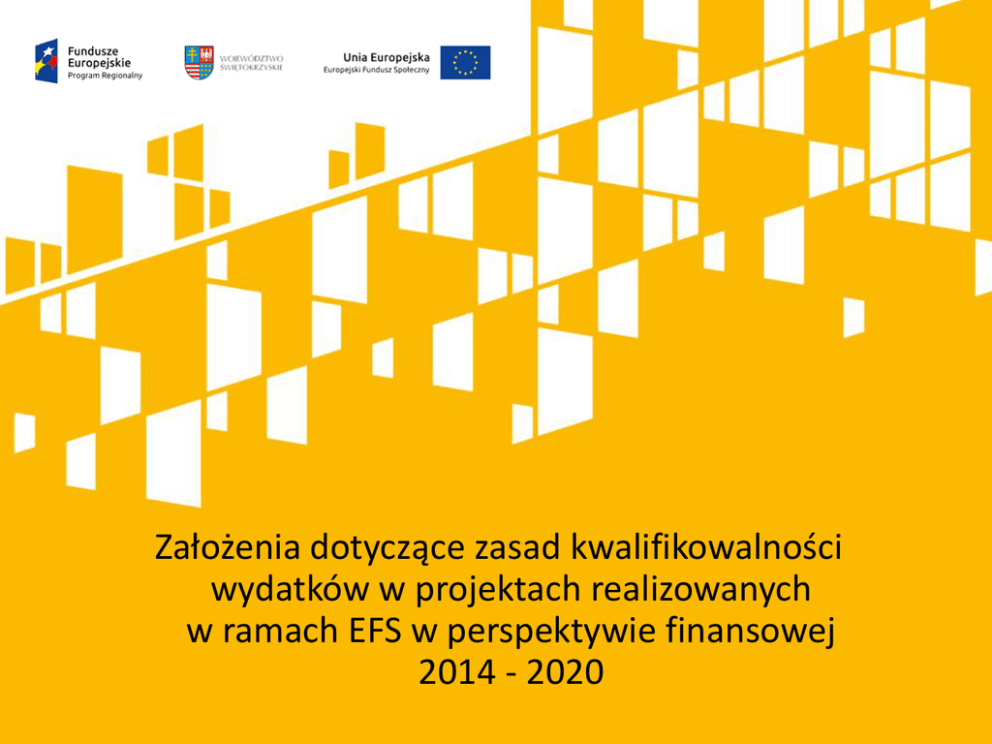 Założenia dotyczące zasad kwalifikowalności wydatków w projektach realizowanych w ramach EFS w perspektywie finansowej 2014 - 2020 Wytyczne w zakresie kwalifikowalności wydatków w ramach Europejskiego Funduszu Rozwoju Regionalnego, Europejskiego Funduszu Społecznego oraz Funduszu Spójności na lata 2014-2020 - wydane na podstawie art. 5 ust. 1 pkt 5 ustawy z dnia 11 lipca 2014 r. o zasadach realizacji programów w zakresie polityki spójności finansowanych w perspektywie finansowej 2014-2020 (Dz. U. z 2014 r. poz. 1146 oraz z 2015 r. poz. 378). - określają ujednolicone warunki i procedury dotyczące kwalifikowalności wydatków dla funduszy strukturalnych (EFS i EFRR) i Funduszu Spójności oraz, zgodnie z art. 1 pkt 2 ustawy wdrożeniowej, dla Inicjatywy na rzecz zatrudnienia ludzi młodych. - obowiązują od 10 kwietnia 2015 r. Wytyczne w zakresie kwalifikowalności wydatków w ramach EFRR, EFS oraz FS na lata 2014-2020 - początkiem okresu kwalifikowalności wydatków jest 1 stycznia 2014 r. (z zastrzeżeniem zasad określonych dla pomocy publicznej) - końcową datą kwalifikowalności wydatków jest 31 grudnia 2023 r. - w przypadku projektów rozpoczętych przed początkową datą kwalifikowalności wydatków, do współfinansowania kwalifikują się jedynie wydatki faktycznie poniesione od tej daty, wydatki poniesione wcześniej nie stanowią wydatku kwalifikowalnego Wytyczne w zakresie kwalifikowalności wydatków w ramach EFRR, EFS oraz FS na lata 2014-2020 - okres kwalifikowalności wydatków w ramach danego projektu określony jest w umowie o dofinansowanie – może zostać zmieniony w uzasadnionych przypadkach, na wniosek beneficjenta, za zgodą właściwej instytucji będącej stroną umowy i na warunkach określonych w umowie - w przypadku projektów współfinasowanych z EFS możliwe jest ponoszenie wydatków po okresie kwalifikowalności określonym w umowie, pod warunkiem, że wydatki te odnoszą się do okresu realizacji projektu, zostaną poniesione do 31 grudnia 2023 r. oraz zostaną uwzględnione we wniosku o płatność końcową (np. składki ZUS) Wytyczne w zakresie kwalifikowalności wydatków w ramach EFRR, EFS oraz FS na lata 2014-2020 - wydatkiem kwalifikowalnym jest wydatek spełniający łącznie warunki wymienione w Wytycznych (podrozdział 6.2), począwszy od stwierdzenia faktu czy został faktycznie poniesiony w okresie wskazanym w umowie o dofinasowanie i zgodnie z jej postanowieniami - wydatek faktycznie poniesiony – wydatek poniesiony w znaczeniu kasowym, tj. jako rozchód środków pieniężnych z kasy lub rachunku bankowego beneficjenta (z wyjątkami, np. wkład własny niepieniężny, wynagrodzenia wypłacane przez stronę trzecią, amortyzacja, wewnętrzna nota obciążeniowa) Wytyczne w zakresie kwalifikowalności wydatków w ramach EFRR, EFS oraz FS na lata 2014-2020 wydatki niekwalifikowalne: - świadczenia realizowane ze środków Zakładowego Funduszu Świadczeń Socjalnych (ZFŚS) - wydatki poniesione na zakup używanego środka trwałego, który był w ciągu 7 lat wstecz (w przypadku nieruchomości 10 lat) współfinansowany ze środków unijnych lub z dotacji krajowych lub wniesienie wkładu własnego niepieniężnego w tej postaci - transakcje dokonane w gotówce, których wartość przekracza 15 000 euro przeliczone na PLN, bez względu na liczbę wynikających z danej transakcji płatności, zgodnie z art. 22 ustawy z dnia 2 lipca 2004 r. o swobodzie działalności gospodarczej (Dz. U. z 2013 r. poz. 672, z późn. zm.) - inne (podrozdział 6.3) Wytyczne w zakresie kwalifikowalności wydatków w ramach EFRR, EFS oraz FS na lata 2014-2020 zasada uczciwej konkurencji - obowiązek przygotowania i przeprowadzenia postepowania o udzielenie zamówienia publicznego w sposób zapewniający w szczególności zachowanie uczciwej konkurencji i równe traktowanie wykonawców, a także zgodnie z warunkami i procedurami określonymi w Wytycznych - zasada uczciwej konkurencji = zasada konkurencyjności + pzp - zamówienia publiczne > 50 tys. PLN netto - tryb uproszczony - wydatki o wartości od 20 tys. PLN netto do 50 tys. PLN netto włącznie - brak trybu - ogólne warunki kwalifikowalności wydatków - wydatki o wartości do 20 tys. PLN netto (na podstawie Wytycznych możliwość określenia szczegółowych procedur w umowie o dofinansowanie) Wytyczne w zakresie kwalifikowalności wydatków w ramach EFRR, EFS oraz FS na lata 2014-2020 zasada uczciwej konkurencji - PZP – dot. beneficjentów zobligowanych do stosowania PZP - zasada konkurencyjności – dotyczy zamówień o wartości powyżej 50 tys. PLN netto – dotyczy więc beneficjentów zobligowanych do stosowania PZP (poniżej progu 30 tys. euro) oraz pozostałych beneficjentów Wytyczne w zakresie kwalifikowalności wydatków w ramach EFRR, EFS oraz FS na lata 2014-2020 uproszczone metody rozliczania wydatków - stawki ryczałtowe (nie stosowane w Polsce) - kwoty ryczałtowe (nieprzekraczające równowartości 100 000 EUR wkładu publicznego) - stawki jednostkowe (w tym godzinowa stawka wynagrodzenia personelu projektu) - ryczałtowe koszty pośrednie Wytyczne w zakresie kwalifikowalności wydatków w ramach EFRR, EFS oraz FS na lata 2014-2020 uproszczone metody rozliczania wydatków - obowiązek stosowania uproszczonych metod rozliczania wydatków w projektach EFS o wartości wkładu publicznego (środków publicznych) nieprzekraczającej wyrażonej w PLN równowartości 100.000 EUR - wydatki rozliczane uproszczoną metodą są traktowane jako wydatki poniesione – nie ma obowiązku gromadzenia ani opisywania dokumentów księgowych na potwierdzenie ich poniesienia - weryfikacja wydatków w oparciu o faktyczny postęp realizacji projektu i osiągnięte wskaźniki Wytyczne w zakresie kwalifikowalności wydatków w ramach EFRR, EFS oraz FS na lata 2014-2020 uproszczone metody rozliczania wydatków kwoty ryczałtowe - kwota uzgodniona za wykonanie określonego w projekcie zadani