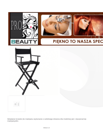 Składane krzesło do makijażu wykonane z solidnego drewna dla mobilnej jak i stacjonarnej makijażystki. Strona 1 z 2 Wyjątkowo mocne i wytrzymałe krzesło ułatwia wykonanie profesjonalnego makijażu. Dane techniczne: wymiary krzesła 50x40x118cm wymiary opakowania: 50.5x21x93cm waga 8kg Strona 2 z 2