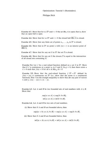 Optimization: Tutorial 1 (Reminders) Philippe Bich