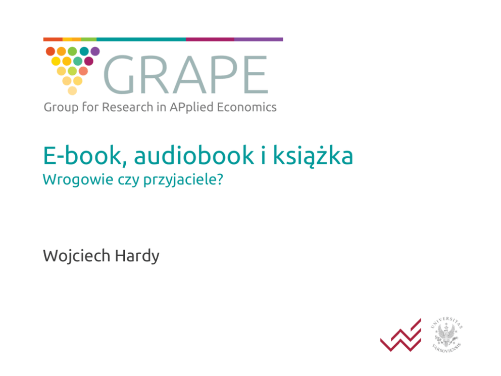 Group for Research in APplied Economics E-book, audiobook i książka Wrogowie czy przyjaciele? Wojciech Hardy Książka i rynek cyfrowy ? 2 Co się dzieje na nowym rynku 45 40 35 Sprzedaż audiobooków [mln zł] Sprzedaż e-booków Virtualo [mln zł] Sprzedaż e-booków [mln zł] 30 25 20 15 10 5 0 2007 2008 2009 2010 2011 2012 2013 Dane: raport Instytutu Książki (2013), raport o rynku e-booków Virtualo, przybliżona prognoza dla rynku na podstawie raportu Virtualo 3 Co się dzieje z książką tradycyjną 150 28 145 27 140 26 135 25 130 125 24 120 23 115 22 110 Liczba sprzedanych egz. (w mln.) 105 21 Wydane tytuły (w tys.) 100 20 2007 2008 2009 2010 Dane: raport Instytutu Książki (2013) 2011 2012 4 Trzy kluczowe pytania Popularność książki `tradycyjnej’ spada. 1. Czy „piractwo” zniechęca do zakupu? - Czy formaty cyfrowe napędzają nieautoryzowany obrót? 2. Czy Polacy tracą zainteresowanie książkami? 3. Czy e-booki i audiobooki `wypychają’ książkę z rynku? 5 1. E-booki i piractwo E-book to potencjalnie: a) Łatwiejsze, i w wyższej jakości, udostępnianie. b) Alternatywa dla nieautoryzowanych źródeł. Liczba nieautoryzowanych kopii Ochrona Miesiąc eksperymentu Miesiąc * Ochrona Liczba nieautoryzowanych kopii przed rozpoczęciem Dostępny e-book Stała Liczba obserwacji Liczba tytułów Współczynnik P-value -6.09 0.021 2.35 0.000 -3.20 0.000 0.45 0.000 -4.90 0.043 6.81 0.153 2514 228 (Obliczenia na podstawie danych z eksperymentu o wpływie `piractwa’ na sprzedaż) 6 2. Czytelnictwo (dowolny format) w Polsce W 2008 koniec spadku czytelnictwa Osoby czytające 7 lub więcej książek Osoby czytające 1-6 książek Osoby nieczytające 100% 90% 80% 70% 60% 50% 40% 30% 20% 10% 0% 2004 2006 2008 Dane: Biblioteka Narodowa – raport o czytelnictwie 2010 2012 7 3. Badanie z Virtualo Cel: poznanie konsumentów książek cyfrowych. Próba: 1890 klientów sklepu Virtualo, w tym: 207 pytanych dokładniej o książki. 204 pytanych dokładniej o audiobooki. 1416 pytanych dokładniej o e-booki. Wszyscy pytani o kupno i czytanie każdego z formatów. 8 Gdzie i kiedy czytamy (e/audio)książki? Gdzie/kiedy Książki E-booki Audiobooki Nie czytam/nie słucham 0% 0,01% 18% Wolny czas w domu 96% 91% 40% Podróż (do pracy/szkoły/uczelni) 68% 62% 48% Podczas urlopu 56% 62% 21% Gdzie indziej 17% 16% 18% Audiobooki czytane inaczej od książek i e-booków. (Obliczenia na podstawie badania przeprowadzonego ze sklepem Virtualo) 9 Jak czytamy e-booki i audiobooki? E-booki Audiobooki Urządzenie Czytelnicy Urządzenie Słuchacze Czytnik 87% Odtwarzacz 41% Telefon 14% Telefon 55% Komputer 27% Komputer 28% Inne 0% Samochód 23% Inne 4% Duże zróżnicowanie metod konsumpcji (Obliczenia na podstawie badania przeprowadzonego ze sklepem Virtualo) (Odpowiedzi na temat audiobooków bez osób nie słuchających w ogóle) 10 Czy e-/audiobooki zastępują książki? Hipoteza 1: Korzystanie z formatów cyfrowych w podobny sposób do tradycyjnych wiąże się z zastępowaniem tych drugich pierwszymi. Ogólny przykład: Słuchanie audiobooków w samochodzie -> brak wpływu na książki. Czytanie e-booków w domu na kanapie -> mniej czytanych książek. Hipoteza 2: Posiadanie urządzenia przeznaczonego na formaty cyfrowe, zwiększa chęć z nich korzystania (relatywnie do książek). 11 Przeciętny czytelnik książki czyta: W wolnym czasie w domu W podróży Podczas urlopu Gdzie / Kiedy indziej 96% 68% 56% 17% W wolnym czasie w domu W podróży Podczas urlopu Gdzie / Kiedy indziej NIE TAK TAK NIE 68% 56% 83% Jan czyta e-booki: Jan jest jak: 4% czytelników książek. Po uśrednieniu, podobieństwo Jana do przeciętnego czytelnika to 52,75%. 12 Analiza – cyfrowe formaty a kupowane książki E-booki (1) E-booki (2) Audiobooki (1) Audiobooki (2) Podobieństwo 0.062 0.935 Kupno (1-6) 0.233 -0.354 0.088 0.181 Kupno (>6) 0.410 0.416 1.227** -15.818** Podobieństwo #Kupno (1-6) 0.667 -0.062 Podobieństwo #Kupno (>6) -0.006 19.445** Czytnik -0.284* -0.287* Telefon -0.143 -0.145 0.501 0.488 Samochód 0.660 0.599 Odtwarzacz 0.062 -0.029 165 165 N 1406 1406 * - Istotność na poziomie 10%; ** - Istotność na poziomie 5% 13 Analiza – cyfrowe formaty a czytanie książek E-booki (1) E-booki (2) Audiobooki (1) Audiobooki (2) Podobieństwo 0.381 5.802** Konsumpcja (1-6) 1.361 0.759 0.225 -5.712* Konsumpcja (>6) 1.466 1.140 0.597 -12.284** Podobieństwo # Konsumpcja (1-6) 0.672 6.983* Podobieństwo # Konsumpcja (>6) 0.358 14.889*** Czytnik Telefon -0.308* -0.305** -0.309* -0.307** 1,406 1,406 Samochód Odtwarzacz N -0.391 0.136 -0.440 -0.387 0.038 -0.483 165 165 * - Istotność na poziomie 10%; ** - na poziomie 5%; *** - na poziomie 1% 14 Podsumowanie Spada liczba sprzedawanych książek. Na rynek wkroczyły formaty cyfrowe i rozwijają się w wielkim tempie. 1) `Piractwo’ nie tłumaczy spadku sprzedaży książek. 2) Zmiana poziomu czytelnictwa nie tłumaczy spadku. 3) E-booki, pod warunkiem pokonania bariery odpowiedniego sprzętu, mogą zmniejszać sprzedaż i czytelnictwo książek tradycyjnych. 4) Audiobooki, przeciwnie, wydają się sprzyjać sprzedaży i czytelnictwu książek tradycyjnych. Efekt moderowany jest podobieństwem trybu konsumpcji. 15 Podsumowanie Okolice 2008 to początek kilku trendów: Zaczyna spadać sprzedaż książek. Wzrasta liczba wydawanych tytułów. Przestaje spadać poziom czytelnictwa. Na rynek wchodzą audiobooki. Niedługo potem rozwijają się pierwsze sklepy z e-bookami. Nowe formaty wydają się sprzyjać rozwojowi czytelnictwa. Polacy odchodzą od książek, ale nie od czytania i kupowania. 16 Dziękuję za uwagę! Autor: Wojciech Hardy e-mail: [email protected] Więcej na: http://grape.uw.edu.pl/iPiracy facebook.com/iPiracy Twitter: @GrapeUW