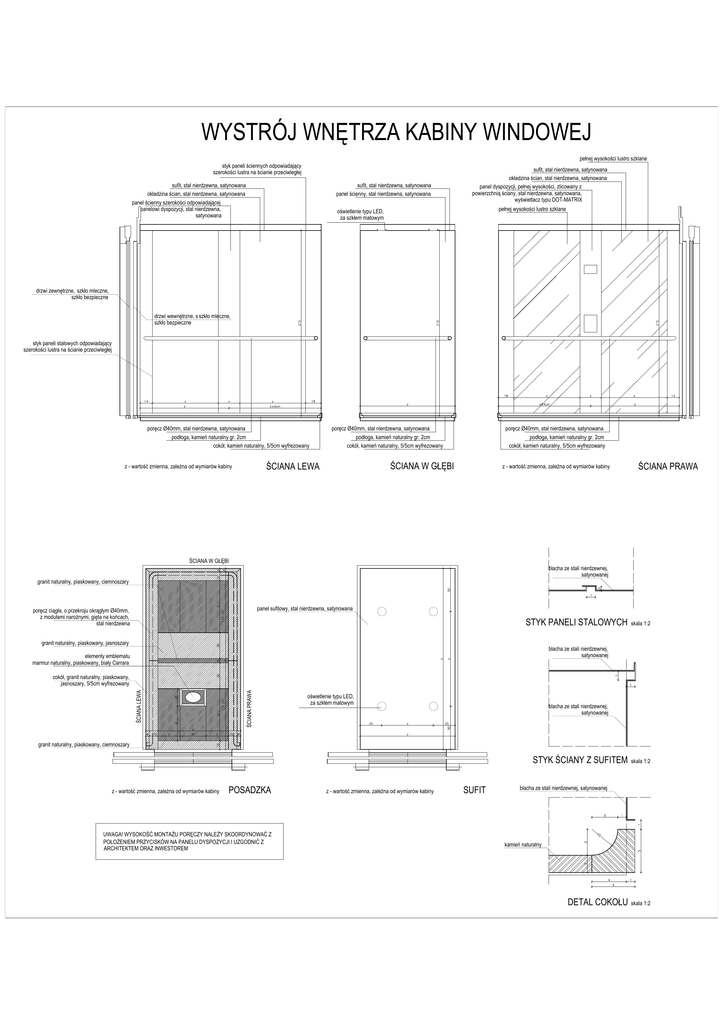 sufit, stal nierdzewna, satynowana sufit, stal nierdzewna, satynowana sufit, stal nierdzewna, satynowana panelowi dyspozycji, stal nierdzewna, satynowana blacha ze stali nierdzewnej, satynowanej granit naturalny, piaskowany, ciemnoszary panel sufitowy, stal nierdzewna, satynowana STYK PANELI STALOWYCH stal nierdzewna skala 1:2 granit naturalny, piaskowany, jasnoszary blacha ze stali nierdzewnej, satynowanej elementy emblematu jasnoszary, 5/5cm wyfrezowany blacha ze stali nierdzewnej, satynowanej granit naturalny, piaskowany, ciemnoszary skala 1:2 POSADZKA SUFIT blacha ze stali nierdzewnej, satynowanej ARCHITEKTEM ORAZ INWESTOREM skala 1:2