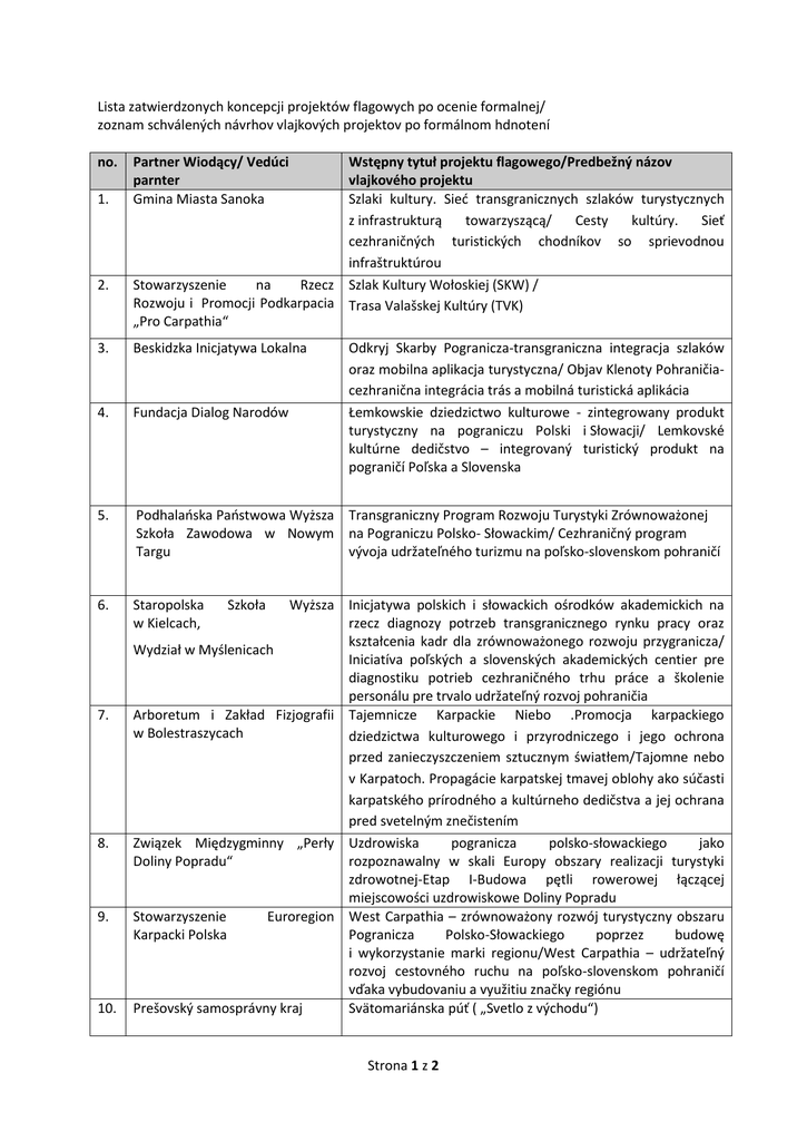 Strona 1 z 2 Lista zatwierdzonych koncepcji projektów flagowych po