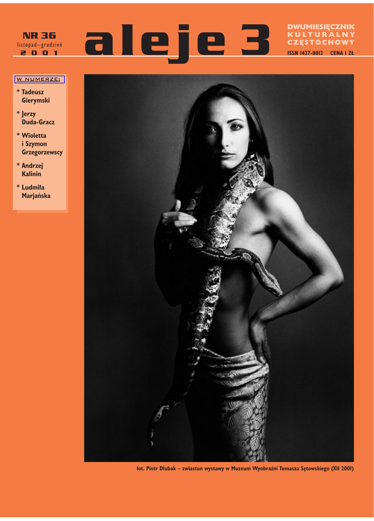 NR 36 li s t o p ad –gru d zieñ 2 0 0 1 a l ej e 3 DWUMIESIÊCZNIK KULTURALNY CZÊSTOCHOWY ISSN 1427-8812 CENA 1 Z£ W NUMERZE: * Tadeusz Gierymski * Jerzy Duda-Gracz * Wioletta i Szymon Grzegorzewscy * Andrzej Kalinin * Ludmi³a Marjañska fot. Piotr D³ubak – zwiastun wystawy w Muzeum WyobraŸni Tomasza Sêtowskiego (XII 2001) Pierwszym laureatem konkursów miesiêcznych by³ Pawe³ Wróblewski, a fotografia pochodzi z rozstrzygniêtego w maju konkursu – „Najbli¿si”. (patrz: Galeria – str. 36) 2 a l e j e 3 listopad–grudzieƒ 2001 spis treœci poezja 4 zapiski o świcie 6 proza 9 recenzje 11 sztambuch teatralny 15 reportaż 19 plastyka 22 wywiad 27 z miasta 29 poczta redakcyjna 32 galeria 34-38 aleje 3 DWUMIESIÊCZNIK KULTURALNY CZÊSTOCHOWY Pismo finansowane przez Urząd Miasta Częstochowy Numer zrealizowany przy pomocy środków budżetowych samorządu województwa śląskiego WYDAWCA Biblioteka Publiczna im. dra Władys Ł awa Biegańskiego w Częstochowie al. NMP 22, 42-200 Częstochowa kontakt: B OGDAN H ENNIG REDAKCJA ul. Równoległa 63, 42-200 Częstochowa tel. (034) 371 07 89 e-mail: [email protected] Redaktor naczelny KRYSTIAN PIWOWARSKI Zespół redakcyjny: SŁAWOMIR BURSZEWSKI ARKADIUSZ ZAJĄC Redakcja tekstów i korekta ANNA WOLAŃSKA Redaktor techniczny MAREK NIEDOSTATKIEWICZ DTP ul. Równoległa 63, 42-200 Częstochowa tel. (034) 371 07 89 DRUK DRUKARNIA KEMOT Częstochowa, ul. Krakowska 45 Projekt okładki, layout i opracowanie graficzne MAREK NIEDOSTATKIEWICZ ARKADIUSZ ZAJĄC Redakcja zastrzega sobie prawo do skrótów i opracowania redakcyjnego materia³ów przyjêtych do druku. R 2 0 0 1 P O W O L I Z B L I ŻA S I Ę ku końcowi i można powiedzieć, że minął pod znakiem drażliwych rozdrapywań ran po czasach holocaustu. Zaczęło się od sprawy o Jedwabne, atmosferę podgrzały roszczenia majątkowe polonii amerykańskiej oraz oskarżenie komputerowego koncernu IBM o wspieranie w czasie wojny Gestapo, na dokładkę mieliśmy aferę z odszkodowaniami dla pracowników przymusowych w III Rzeszy. Dopiero po pięćdziesięciu sześciu latach od zakończenia II wojny światowej nadszedł czas na rozliczenia i gesty zadośćuczynienia. Przy okazji odzywają się dawne, uśpione fobie i antagonizmy. Niedawno Unia Europejska przeprosiła za kolonializm i niewolnictwo w czarnej Afryce. W tej sytuacji Polacy powinni domagać się przeprosin i rekompensaty za okres zaborów od rządów Niemiec, Rosji i Austrii. Przecież przez sto dwadzieścia lat ktoś czerpał z nas zyski… Interesująca jest otoczka kulturalna tych zjawisk. Ogromną popularnością cieszy się znów kultura żydowska. Powstają filmy (wkrótce „Pianista” Polańskiego), książki i komiksy. Najgłośniejszy chyba – „Maus” Arta Spiegelmanna wydany po dziesięciu latach w Polsce rozładował trochę napięcie związane z tą tematyka, ponieważ swoje spojrzenie na „czas pieców” zaprezentowało młode pokolenie Żydów, które także musiało się jakoś z przeszłością rozliczyć. Najciekawsze, że akcja tej dwuczęściowej epopei rozpoczyna się w Częstochowie (stąd pochodzi główny bohater), a swoją stylistyką przypomina „Folwark Zwierzęcy” Orwella. Ludzie są w „Mausie” tylko zwierzętami i jak to bywa w przyrodzie, jeden jest łowcą a drugi ofiarą. Dlaczego „Maus”? Otóż jest to nawiązanie do haseł propagandy hitlerowskiej z lat trzydziestych, które posądzały te gryzonie o roznoszenie bakterii po całym świecie. Poczciwa Miki z kreskówek Walta Disneya stałą się obiektem nienawiści nazistowskich ideologów i w niej dopatrywano się potencjalnego zagrożenia moralnego. Niekiedy rzeczywistość brutalnie ingeruje w świat bajek… Często zastanawiam się: jak wyglądałoby społeczeństwo polskie, gdyby nie byOK ło ostatniej wojny? 40 procent mniejszości narodowych, zsemityzowana inteligencja. Jak Polacy przyjęliby taką sytuację? Przecież jesteśmy uważani za jeden z najbardziej antysemickich krajów w Europie. Czy starczyłoby nam tolerancji dla wyznawców Talmudu, czy też zachowywalibyśmy się jak nasi południowi sąsiedzi – Czesi, którzy budują getta dla Romów? Nawet szum wokół malowideł Brunona Schulza wykorzystano na Ukrainie, żeby nagłośnić jego pochodzenie. Ciekawe, ilu pisarzy zostałoby w polskim podręczniku po „oddaniu” twórców Litwinom, Ukraińcom czy Żydom? Uczniowie by się ucieszyli… W powieści Wł. Reymonta „Ziemia Obiecana” jest pokazana sytuacja pozytywna: Polak, Żyd i Niemiec w przemysłowej Łodzi zakładają spółkę i wspólnie robią interesy. Może się tego nie zauważa, ale ta zauroczona kapitałem i finansami książka niosła w sobie także ideę porozumienia ponad podziałami, dążenia do wspólnego celu. Jak bardzo Polakom tego brakuje! Za dużo mamy uprzedzeń, za dużo stereotypów urobiło naszą opinię… Tyle o przeszłości. Obchodzący niedawno osiemdziesiąte urodziny Stanisław Lem, nasz wielki futurolog, zapytany o przyszłość, powiedział że nie widzi jej w optymistycznych kolorach. Jak na potwierdzenie jego słów, tydzień później terroryści uderzyli w Word Trade Center w NY. W „Bombie megabitowej” Lem zapowiadał, iż wojny przyszłości będą wyglądały zupełnie inaczej niż nasze o nich wyobrażenie. Zapewne był to tylko przedsmak tego, co nas czeka w XXI wieku. Kontratak trzeciego świata i konflikt cywilizacyjny może być bolesny dla bogatej Północy. Podejrzewam, że temat Żydów w tym kontekście będzie powracał jeszcze nie raz i może mieć numer 1. Prof. Nowak–Jeziorański podkreśla, że bomba tyka na Bliskim Wschodzie… Zastanawiając się nad ludzkością w sensie globalnym, pytam: czy nasz gatunek jest rzeczywiście niezbędny dla istnienia tej planety? Życzę Państwu mniej podobnych, pesymistycznych rozterek i zachęcam do wypadów w świat kultury i sztuki.■ S. Burszewski listopad–grudzieƒ 2001 a le je 3 3 poezja 