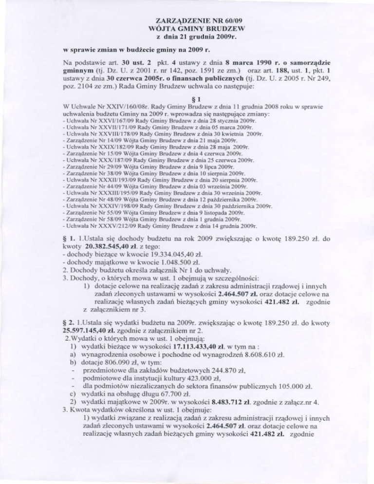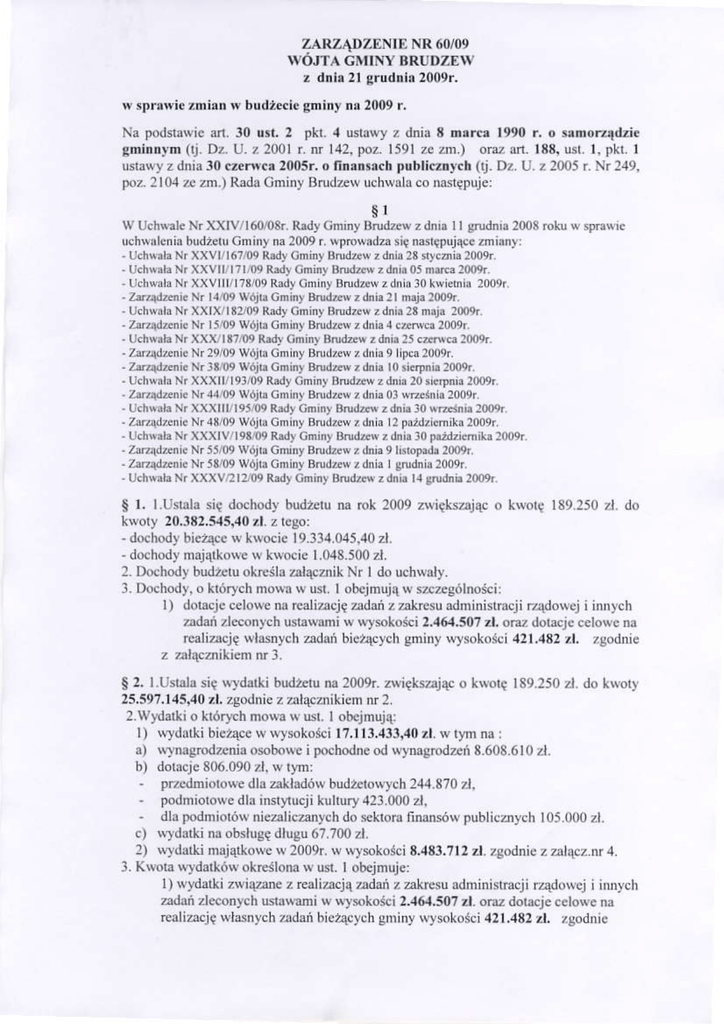 - &ŹĄdŹmic N. 55/09wójh cminy Brudz.ł ? dDR9 |isbpod|,009l'