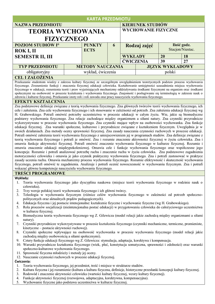 TEORIA WYCHOWANIA FIZYCZNEGO