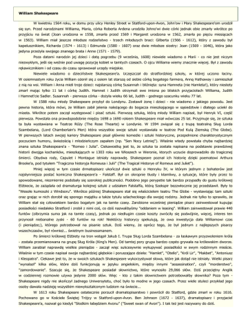 "zamordowanie". Szacuje się, że Shakespeare posiadał słownictwo, które wynosiło 29,066 słów. Dziś przeciętny Anglik
