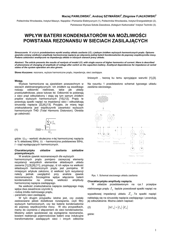 wpływ baterii kondensatorów na możliwości powstania - IME