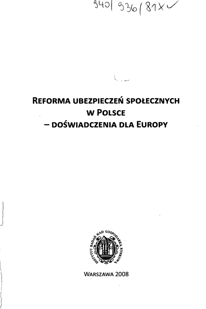 REFORMA UBEZPIECZEŃ SPOŁECZNYCH w POLSCE - DOŚWIADCZENIA DLA EUROPY J "V WARSZAWA 2008 Spis treści Wstęp 5 Wpływ reformy ubezpieczeń społecznych na finanse Funduszu Ubezpieczeń Społecznych L Hanna Zalewska, Departament Statystyki ZUS 7 Wpływ reformy ubezpieczeń społecznych na rynek finansowy Ryszard Petru, Szkoła Główna Handlowa 16 Reforma ubezpieczeń społecznych z punktu widzenia pracodawców Jeremi Mordasewicz, Polska Konfederacja Pracodawców Prywatnych 21 Reforma ubezpieczeń społecznych z punktu widzenia ubezpieczonych Aleksandra Wiktorów, Instytut Badań nad Gospodarką Rynkową 24 Obowiązkowe kapitałowe systemy emerytalne - doświadczenia innych krajów Zofia Czepulis-Rutkowska, Instytut Pracy i Spraw Socjalnych 37 Dyskusja 47