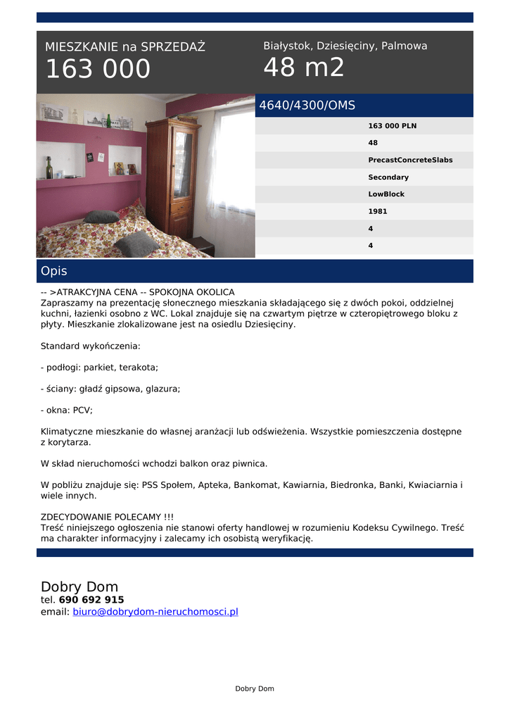 163 000 48 m2 - Dobry Dom Nieruchomości