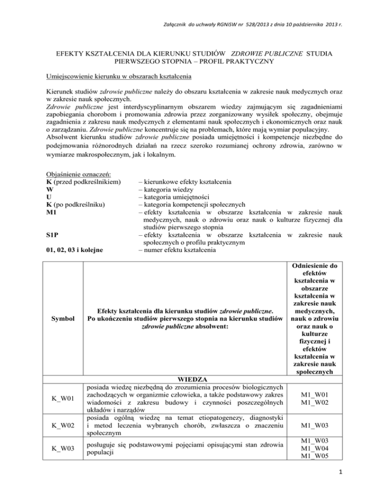 1 EFEKTY KSZTAŁCENIA DLA KIERUNKU STUDIÓW ZDROWIE