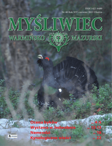 ISSN 1427-8480 Nr 48 Rok XIV czerwiec 2011 Olsztyn Ocena byków Wystawa w Jedwabnie Nemrodzi Kynologiczne wieści 4-5 str. 12-13 str. 18 str. 22 str. 2 MYŚLIWIEC Nr 48 czerwiec 2011 Terminarz imprez związanych z tematyką łowiecką, leśną i kynologiczną na terenie województwa warmińsko-mazurskiego 02.07. XVII Warmiński Konkurs Pracy Tropowców Łajs 02.07. VI Węgorzewski Festiwal Kultury Łowieckiej, V Konkurs Sygnalistów Myśliwskich Krainy Wielkich Jezior Mazurskich Węgorzewo 03.07. Krajowa Wystawa Psów Rasowych Olsztyn 08.07. VII Mazurski Konkurs Sygnalistów Myśliwskich im. Tomka Napiórkowskiego Regionalne Obchody Dnia Lasu Spychowo 09.07. Ogólnopolskie Zawody Strzeleckie Seniorów Giżycko 17.07. IV Festiwal Kultury Myśliwskiej Lidzbark Warmiński 06.08. Puchar Jezior Mazurskich Giżycko 20.08. Krajowy Konkurs Pracy Retrieverów w kl. B i C, Konkurs Pracy Retrieverów w klasie A Omin 27.08. Puchar Prezydenta Miasta Olsztyn Olsztyn-Gutkowo 03.09. V Warmiński Konkurs Wabienia Jeleni im. Tadeusza Madeja Nadl. Nowe Ramuki 10.09. Mistrzostwa Okręgu Olsztyńskiego PZŁ w Strzelaniach Myśliwskich Olsztyn-Gutkowo 19.09. 01.10. Konkurs pracy Dzikarzy i Norowców, Konkurs Norowania Jamników Króliczych XIV Międzynarodowy Konkurs Pracy Posokowców, Międzynarodowy Konkurs Pracy Tropowców dla Ogarów i Gończych Polskich Gołąbki k. Pasłęka Orzechowo 08.10. Konkurs Pracy Dzikarzy, Tropowców i Posokowców Wejsuny 22.10. „Zakończenie Sezonu” Zawody w Strzelaniach Myśliwskich Olsztyn-Gutkowo IMPREZY Festiwale Kultury Myśliwskiej 17 lipca 2011 r. ,zapraszamy na Festiwal Kultury Myśliwskiej, który odbędzie się już po raz czwarty w Lidzbarku Warmińskim. Podobnie jak w roku ubiegłym, Festiwal rozpocznie uroczysta msza św. z oprawą myśliwską w Kościele Św. Apostołów Piotra i Pawła z udziałem pocztów sztandarowych oraz zespołów sygnalistów myśliwskich. Po uroczystościach kościelnych o godzinie 12.00 rozpocznie się koncert muzyki myśliwskiej, któremu będzie towarzyszyło wiele atrakcji, m.in. wspólne gotowanie z Grzegorzem Russakiem, konkursy, prezentacja ras psów myśliwskich. Swój udział podobnie jak w roku ubiegłym zapowiedziały sąsiadujące z Lidzbarkiem Warmińskim nadleśnictwa. Widzowie będą mogli brać udział w konkursach o tematyce leśnej oraz poznać specyfikę każdego z nadleśnictw. Głównymi organizatorami festiwalu są Urząd Miejski w Lidzbarku Wramińskim oraz Zarząd Okręgowy PZŁ w Olsztynie. W dniu 2 lipca br w Węgorzewie odbędzie się VI Regionalny Festiwal Kultury Łowieckiej. Oficjalne otwarcie festiwalu nastąpi o godz. 1100 na Placu Wolności w Węgorzewie. Wśród przygotowanych atrakcji przewidziano m.in. występ mistrza świata w wabieniu jeleni Kol. Ludwika Śliwki, konkursy kulinarne, kiermasze, koncerty i konkursy sygnalistów, pokazy psów myśliwskich, konkurs budowy urządzeń łowieckich i wiele, wiele innych. Szczegółowy program Festiwalu można znaleźć na stronie: www.muzeum-wegorzewo.pl MYŚLIWIEC 3 Posezonowe refleksje! Kwartalnik Mazurskiej Okręgowej Rady Łowieckiej i Zarządu Okręgowego PZŁ w Olsztynie ul. Leśna 8 10-173 Olsztyn tel. 89 535 15 56 fax 89 527 97 52 Druk kwartalnika dofinansowany przez Wojewódzki Fundusz Ochrony Środowiska i Gospodarki Wodnej w Olsztynie REDAKCJA: Redaktor naczelny Zbigniew Korejwo Sekretarz redakcji Mariusz Jakubowski RADA PROGRAMOWA: Jarosław Groszyk Tadeusz Ratyński Piotr Sikorski Dariusz Zalewski PRZYGOTOWANIE: INTER PRIM Sp. z o.o. ul. Św. Wojciecha 2/23 10−038 Olsztyn FOTOGRAFIA NA OKŁADCE: Cezary Korkosz Redakcja zastrzega sobie prawo skrótów, poprawek i uzupełnień w przypadku wykorzystania w druku nadesłanego materiału. TEMAT STRONY Sezon polowań zbiorowych jest za nami i czas na pewne przemyślenia. Często na polowania są zapraszani Koledzy z innych kół lub niepolujący goście, którzy chcą zażyć „pigułki tlenowej” w miły towarzystwie. Dobre polowanie, to dobra kompania, i zapewne tak jest w większości kół, ale jest różnie. Temat jest, oczywiście, nie nowy. W historii myślistwa różnie bywało i bywa nadal, a przykładem są „niepotrzebne sprawy ”wpływające do rozstrzygnięcia przez Zarząd Okręgowy lub Okręgowy Sąd Łowiecki. Kiedy zbierałem swoje myśli na ten temat, przypomniał mi się artykuł Adama hr. Rzewuskiego, zamieszczony w przedwojennych „Echach Leśnych”, który doskonale odzwierciedla sytuację i w naszych czasach, wyręczając mnie w ten sposób z tego kłopotliwego tematu, który, mam nadzieję, pobudzi do myślenia niejednego ze współczesnych nemrodów. A oto spostrzeżenia autora o miłych i niemiłych towarzyszach łowów, które przytaczam z niewielkimi skrótami. „W przezacnej konfraterni myśliwskiej nie wszyscy towarzysze są jednako mili. Szczególnie to się odnosi do zbiorowych „kółkowych” zespołów…Niestety znajduje się pewien odsetek ludzi gorących, łapczywych lub zgryźliwych, którzy potrafią „zatruć” najlepsze nawet łowy, wnieść dysharmonię i pewne zgrzyty, w najlepiej zgrane myśliwskie „gremium”. Do tego rodzaju należą, że tak powiem „laicy” – przygodni „niedzielni strzelcy”, którzy, nie uwzględniając, warunków zagospodarowania terenu, stawiają różne zarzuty zarządowi, czy łowczemu i oskarżają o lekkomyślność, nawet niefachowość… Pożal się Boże!… nad takimi sędziami. Później, kategoria „strzelaczy”, lubujących się… „w dynamice” oddanych strzałów, nie zważając na odległości! Osobnicy ci kaleczą bez miłosierdzia zwierzynę, która, w niepotrzebnych męczarniach marnie ginie. Następnie „zawodowi pesymiści” i ludzie „kraczący”, którzy już samą swoją obecnością stwarzają niemożliwy nastrój!. Dla nich wszystko jest zawsze złe.!… nieobmyślane i zlekceważone!… Amatorzy „bądź co bądź” zdobycia „królestwa”, spierając się o „swoją” z