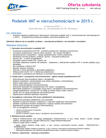 Oferta szkolenia Podatek VAT w nieruchomościach w 2015 r.