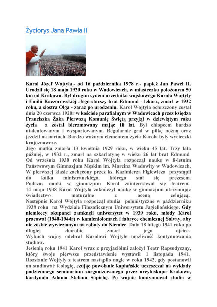 Życiorys Jana Pawła II