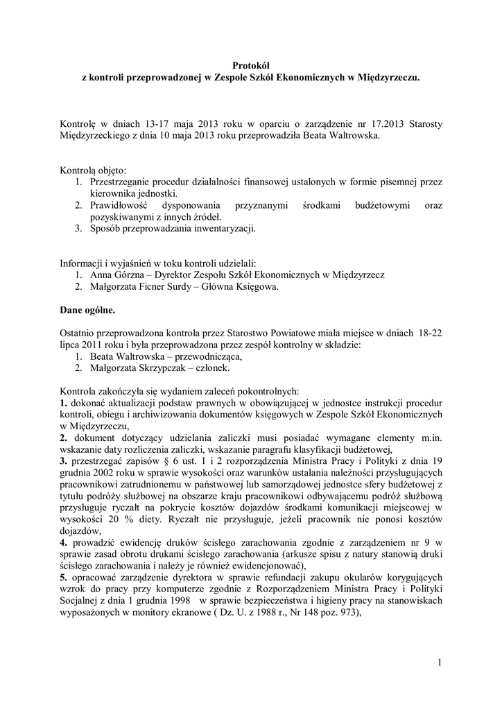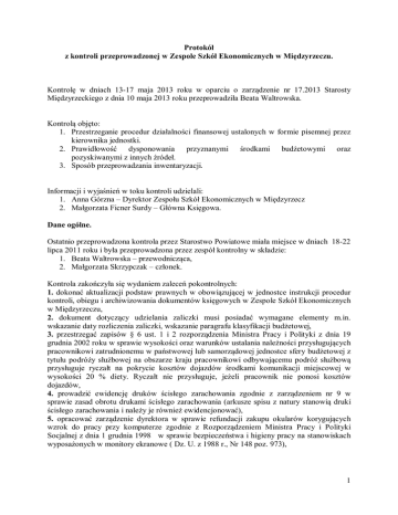 1 Protokół z kontroli przeprowadzonej w Zespole Szkół