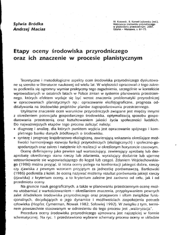 Teoretyczne i metodo|ogiczne aspekty ocen środowiska przyrodniczego dyskutowane są szeroko W literaturfe naukowej od wie|u lat. W więkzościopracowań z tego zakre.