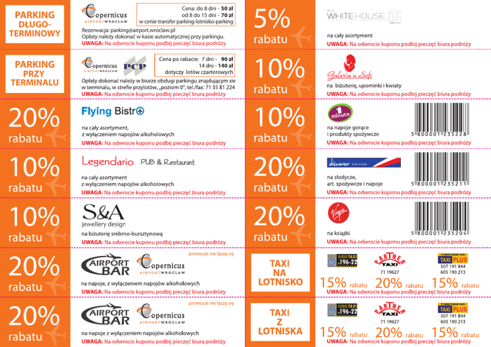 PARKING DŁUGOTERMINOWY PARKING PRZY TERMINALU Cena: do 8 dni - 50 zł od 8 do 15 dni - 70 zł w cenie transfer parking-lotnisko-parking Rezerwacja: [email protected] Opłaty należy dokonać w kasie automatycznej przy parkingu. UWAGA: Na odwrocie kuponu podbij pieczęć biura podróży