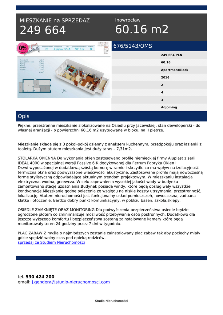 249 664 60.16 m2 - Studio Nieruchomości