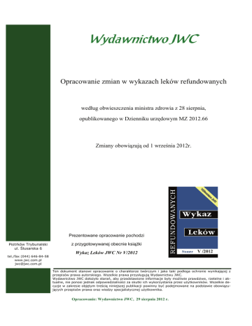 JWC - opracowanie zmian w wykazach leków refundowanych od