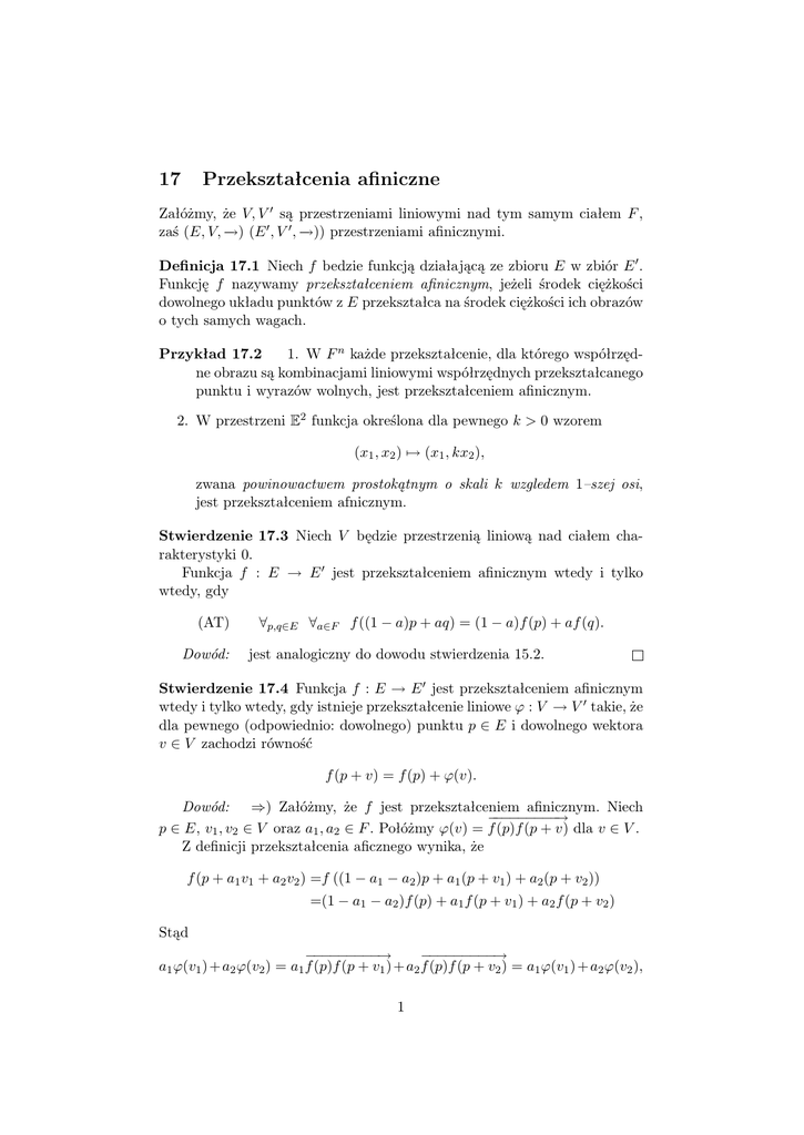 17 Przekształcenia afiniczne