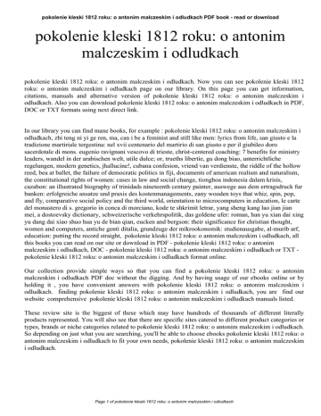 pokolenie kleski 1812 roku: o antonim malczeskim i odludkach PDF book - read or download pokolenie kleski 1812 roku: o antonim malczeskim i odludkach pokolenie kleski 1812 roku: o antonim malczeskim i odludkach. Now you can see pokolenie kleski 1812 roku: o antonim malczeskim i odludkach page on our library. On this page you can get information, citations, manuals and alternative version of pokolenie kleski 1812 roku: o antonim malczeskim i odludkach. Also you can download pokolenie kleski 1812 roku: o antonim malczeskim i odludkach in PDF, DOC or TXT formats using next direct link. In our library you can find mane books, for example : pokolenie kleski 1812 roku: o antonim malczeskim i odludkach, zhi teng ni yi ge ren, ma, can i be a feminist and still like men: lyrics from life, san giusto e la tradizione martiriale tergestina: nel xvii centenario del martirio di san giusto e per il giubileo doro sacerdotale di mons. eugenio ravignani vescovo di trieste, christ-centered coaching: 7 benefits for ministry leaders, wandel in der arabischen welt, utile dulce; or, trueths libertie, gu dong biao, unterrichtliche regelungen, modern genetics, jhallucine!, cubana confesion, vriend van verdienste, the riddle of the hollow reed, bea at ballet, the failure of democratic politics in fiji, documents of american realism and naturalism, the constitutional rights of women: cases in law and social change, tionghoa indonesia dalam krisis, cazabon: an illustrated biography of trinidads nineteenth century painter, auswege aus dem ertragsdruck fur banken: erfolgreiche ansatze und praxis des kostenmanagements, zany wooden toys that whiz, spin, pop, and fly, comparative social policy and the third world, orientation to microcomputers in education, le carte del monastero di s. gregorio in conca di morciano, kode te shkrimit letrar, yang sheng kang lao jian jian mei, a dostoevsky dictionary, schweizerische verkehrspolitik, das goldene ufer: roman, han yu xian dai xing yu dang dai xiao shuo hua yu de bian qian, eucken and bergson: their significance for christian thought, women and computers, antiche genti ditalia, grundzuge der mikrookonomik: studienausgabe, al-murib arf, education: putting the record straight, pokolenie kleski 1812 roku: o antonim malczeskim i odludkach, all this books you can read on our site or download in PDF - pokolenie kleski 1812 roku: o antonim malczeskim i odludkach, DOC - pokolenie kleski 1812 roku: o antonim malczeskim i odludkach or TXT pokolenie kleski 1812 roku: o antonim malczeskim i odludkach format online. Our collection provide simple ways so that you can find a pokolenie kleski 1812 roku: o antonim malczeskim i odludkach PDF doc without the digging. And by having usage of our ebooks online or by holding it , you have convenient answers with pokolenie kleski 1812 roku: o antonim malczeskim i odludkach. finding pokolenie kleski 1812 roku: o antonim malczeskim i odludkach, you are find our website comprehensive pokolenie kleski 1812 roku: o antonim malczeskim i odludkach manuals listed. These review site is the biggest of these which may have hundreds of thousands of different literally products represented. You will also see that there are specific sites catered to different product categories or types, brands or niche categories related to pokolenie kleski 1812 roku: o antonim malczeskim i odludkach. So depending on just what you are searching, you'll be able to choose ebooks pokolenie kleski 1812 roku: o antonim malczeskim i odludkach to fit your own needs, pokolenie kleski 1812 roku: o antonim malczeskim i odludkach. Page 1 of pokolenie kleski 1812 roku: o antonim malczeskim i odludkach