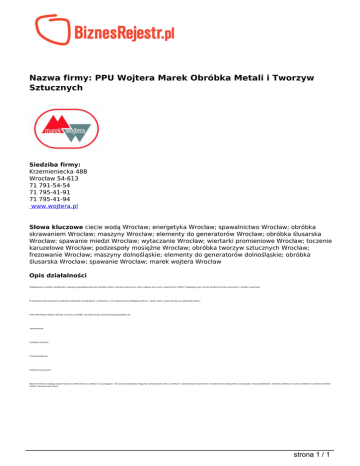 Nazwa firmy: PPU Wojtera Marek Obróbka Metali i