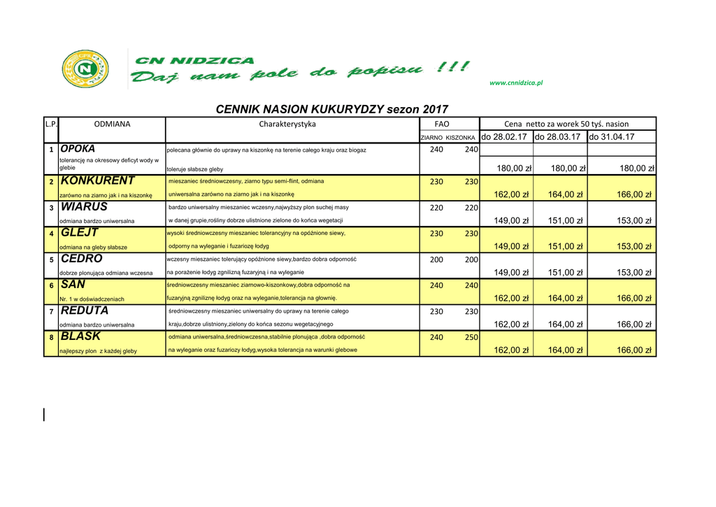 CENNIK NASION KUKURYDZY sezon 2017 1 OPOKA