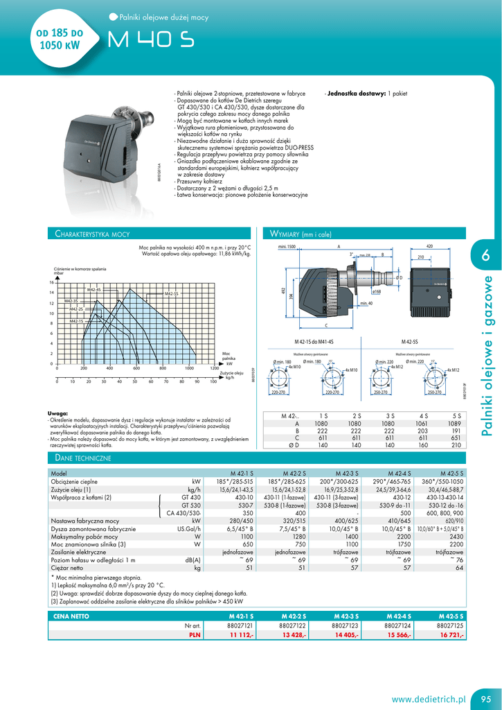 - Moc palnika należy dopasować do mocy kotła, w którym jest zamontowany, z uwzględnieniem