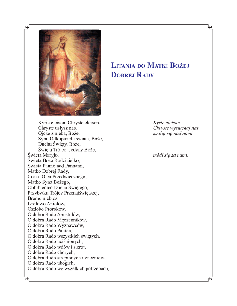 LITANIA DO MATKI BOŻEJ DOBREJ RADY