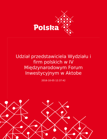 Udział przedstawiciela Wydziału i firm polskich w IV Międzynarodowym Forum Inwestycyjnym w Aktobe 2016-10-05 12:37:42 2 W dniu 28 września 2016 r. w Aktobe odbyło się Międzynarodowe Forum Inwestycyjne „Aktobe-Invest 2016”. Forum otworzył Akim Obwodu Aktiubińskiego – Pan Berdybek Saparbajew, a w części oficjalnej głos zabierali m.in.: Pan Bałyrżan Bajbek – Akim miasta Ałmaty, Pan Ałtaj Kałyginow – Akim Obwodu ZachodnioKazachstańskiego, Pan Albert Rau – Wiceminister Inwestycji i Rozwoju RK, Pan Francis Etien – Ambasador Francji w Astanie. WPHI w Ałmaty na Forum reprezentował Pana Radca Włodzimierz Kurowski – Kierownik Wydziału. IV Międzynarodowe Forum Inwestycyjne w Aktobe zgromadziło ponad 600 uczestników z 18 krajów świata. Imprezie towarzyszyła wystawa projektów inwestycyjnych, które będą realizowane w Obwodzie Aktiubińskim w perspektywie krótko i średnioterminowej. Do ciekawszych projektów zaliczyć można: projekt utworzenia strefy agro-przemysłowej, projekt utworzenia sadu jabłoniowego, projekt budowy centrum logistyczno-transportowego, projekt budowy zakładu przetwórstwa owocowo-warzywnego, projekt budowy zakładu mięsnego (szczegóły nt. w/w i szeregu innych projektów znajdują się w posiadaniu Wydziału). W Forum uczestniczyła 5-cio osobowa misja z Polski z branży rolno-spożywczej. W składzie misji znajdowali się przedstawiciele następujących firm i instytucji: Instytutu Biotechnologii Przemysłu Rolno-Spożywczego, „TEGRAPOL” – przedsiębiorstwo zajmuje się przetwórstwem nasion roślin oleistych, P.H.U. PAWLICKI – firma zajmuje się przetwórstwem owocowo-warzywnym, gospodarstwo szkółkarskie „CHUDOWOLSKI” – gospodarstwo zajmuje się produkcją wysokowydajnego materiału szkółkarskiego (drzew i krzewów owocowych), SMP INWEST – firma zajmuje się inżynierią agro-przemysłową. W Forum uczestniczył również przedstawiciel polskiej firmy BEWA, działającej w branży komunalnomieszkaniowej. Uczestnicy misji wzięli udział w sesji plenarnej poświęconej rozwojowi rynku zdrowej żywności – spojrzenie ze strony ekspertów i przedstawicieli biznesu. W trakcie panelu z wykładem nt. rynku zdrowej żywności w Polsce wystąpił Pan Prof. Stanisław Ptasznik – przedstawiciel Instytutu Biotechnologii Przemysłu Rolno-Spożywczego. Ponadto, w dniu 28 września 2016 r. uczestnicy misji spotkali się z Wiceakimem Obwodu Aktiubińskiego, odpowiedzialnym za sprawy gospodarki żywnościowej obwodu. 3