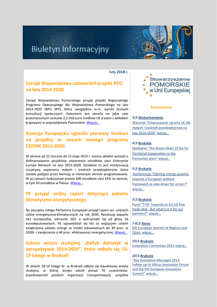 Luty 01/2014 - Stowarzyszenie Pomorskie w Unii Europejskiej