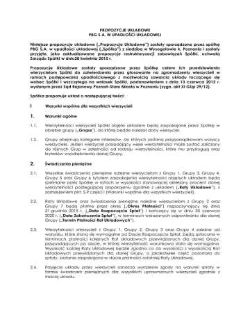 Niniejsze propozycje układowe („Propozycje Układowe”) zostały sporządzone przez spółkę