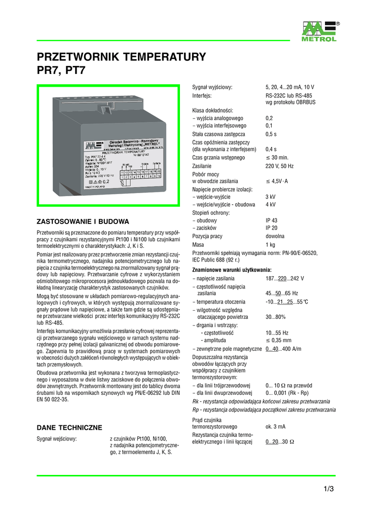 PRZETWORNIK TEMPERATURY PR7, PT7