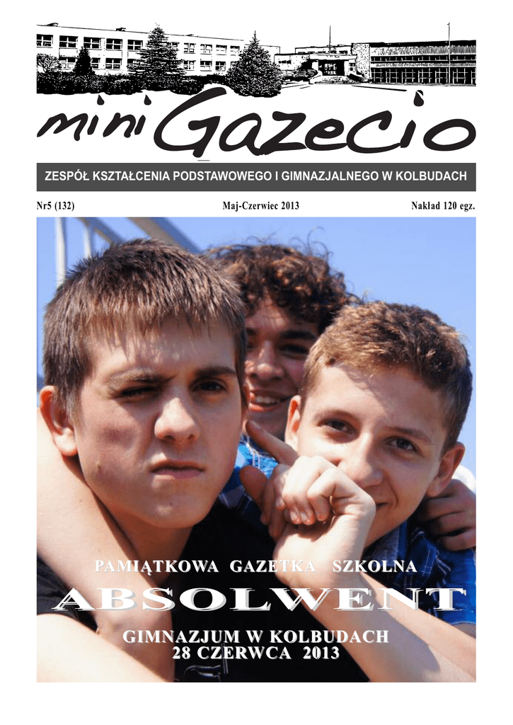 Nr5 (132) Maj-Czerwiec 2013 Na kład 120 egz. PAMIĄTKOWA GAZETKA SZKOLNA AB S SO L LW E N T GIMNAZJUM W KOLBUDACH 28 CZERWCA 2013 Z życia szkoły POLA NADZIEI 2013 21 kwietnia po raz siódmy Szkolny Klub Wolontariusza ,, Nadzieja” włączył się w akcję charytatywną na rzecz pomorskich hospicjów. 33 chętnych uczniów pod okiem 19 nauczycieli zbierało pieniądze na potrzeby ludzi nieuleczalnie chorych przy kościołach w Kolbudach, Lublewie, Pręgowie, Czapielsku oraz kaplicach w Jankowie i Buszkowach. Udało nam się zebrać ponad 6.400 złotych. Rozdaliśmy 1800 żonkili , które są symbolami nadziei. W tym roku zachęcał nas do tego ksiądz Jędrzej Orłowski - dyrektor gdańskiego hospicjum we Wrzeszczu , który prowadził rekolekcje wielkopostne w Kolbudach. Ksiądz podkreślał, że zaangażowanie naszych parafii jest bardzo duże i dziękował wszystkim ofiarodawcom. Fundacja Hospicyjna wystosowała dla naszych wolontariuszy podziękowanie na piśmie. Opiekun szkolnego wolontariatu p.Anna Moskal EGZAMIN W GIMNAZJALNY dniach 23-25.04.2013 odbył się już po raz dwunasty egzamin dla uczniów klas trzecich gimnazjum. W naszej szkole wzięło w nim udział 120 uczniów. Egzamin składał się z trzech części: I – humanistycznej (zakresy: historia + WOS, jęz. polski) II – matematyczno – przyrodniczy (zakresy: przyrodniczy, matematyka) III – język obcy nowożytny (zakresy: podstawowy, rozszerzony). 21.06.2013 gimnazjaliści poznali swoje wyniki, mamy nadzieję, że pozwolą im dostać się do wymarzonych szkół ponadgimnazjalnych (fotorelacja na str. 10-11). Pani Marzena Trening Trening z MISTRZEM 30 kwietnia naszą szkołę odwiedziła Anna Rogowska – polska lekkoatletka, mistrzyni świata w skoku o tyczce, medalistka olimpijska, halowa mistrzyni Europy i wicemistrzyni świata. Urodziła się 21 maja 1981 roku w Gdyni, reprezentuje klub sportowy SKLA Sopot. W spotkaniu, w którym udział wzięli starsi uczniowie szkoły podstawowej, towarzyszył jej trener i jednocześnie mąż pan Jacek Torliński. Życiowy rekord Anny Rogowskiej w skoku o tyczce wynosi 4,83 m, natomiast w halowej odmianie jest to 4,85 m. Podczas prezentacji multimedialnej zapoznaliśmy się bliżej ze sportową karierą tyczkarki i jej osią- 2 gnięciami, obejrzeliśmy fragmenty filmów z treningów, gali, dekoracji. Następnie na podstawie wcześniej i teraz zdobytej wiedzy przeprowadzono krótki quiz. Za poprawne udzielenie odpowiedzi czekała nie byle jaka nagroda - zdjęcie Anny Rogowskiej z jej autografem. Trener Torliński przywiózł ze sobą najważniejsze medale, mogliśmy więc obejrzeć je z bliska i poznać ich historię. Mieliśmy wiele pytań do naszych gości, niestety nie było możliwości zadać ich wszystkich. A były różne, nie tylko związane ze sportem: „O czym Pani marzy? Czy ma Pani inne hobby? Jak trudna jest praca trenera?” Dużym zainteresowaniem cieszył się pokazowy trening szkolnych lekkoatletów. Goście fachowym okiem przyglądali się ich umiejętnościom, dawali cenne rady. Spotkanie zakończyło się wspólnym zdjęciem z lekkoatletką i jej trenerem, którzy również chętnie pozowali do indywidualnych zdjęć i rozdawali autografy (fotorelacja na str. 9). Martyna 3C Na okładce: Sympatyczni uczniowie kl. 3C Ga ze ta Ze spo łu Kształ ce nia Pod sta wo we go i Gim na zjal ne go w Kol bu dach. Re da gu ją uczniowie naszej szkoły; opie ka: I. Frączek, M. Szen kin - Chmie lew ska, A. Brocka-Rzeźnik; współ pra ca: D.Czajkowska, M. Treder, A.Rydzewska; zdjęcia: P.Jóźwik, M.Włodarski, I. Frączek, M.Seelau, M.Szenkin. Wy d a w c a : Z K P i G 8 3 - 0 5 0 K o l b u d y, u l . Wy b i c k i e g o 3 3 , t e l . ( 0 5 8 ) 6 8 2 7 2 2 4 , e - m a i l : z k p i g k @ i d s l . p l , h t t p : / / w w w. k o l b u d y. n e o s r t a d a . p l KONCERT O statni w tym roku szkonym koncert szkolny odbył się 14 maja i był zatytułowany "Wiosenne muzykowanie". Upamiętniając rok Witolda Lutosławskiego i Juliana Tuwima pani Karolina (sopran) wykonała piosenkę "Pan Tralaliński". Pan Janusz Żak (bas) znakomicie zilustrował postać służącego Reporello z opery Wolfganga Amadeusza Mozarta "Don Juan". Na- stępnie pan Radosław Kruszyna na keyboardzie zaimprowizował wędrówkę "Marsza Tureckiego" Mozarta przez kilka kontynentów. Pan Robert Henning (baryton) Uroczystość w Sztutowie 9 maja byliśmy razem z kolegami i panią Linstedt na obchodach 68 rocznicy zakończenia II Wojny Światowej. Rocznicy ważnej dla naszej ojczyzny gdyż odżyły nadzieje na lepsze jutro i zakończenie koszmaru jakim była wojna. Przyjechaliśmy do Sztutowa gdzie znajduje się były obóz koncentracyjny. Uroczystość odbywała przy pomniku upamiętniającym ludzi, którzy zginęli podczas okupacji. Spotkaliśmy się z byłymi więźniami obozu Stutthof. Było to dla mnie niezwykłym przeżyciem, którego nigdy nie zapomnę. Wręcz niebywałe jest to, że jeszcze takie osoby żyją i że udało im się przeżyć męczarnie obozu. Co roku weterani zbierają się, aby obchodzić rocznicę końca 11 maja w Kolbudach odbył się I Pomorski Przystanek Pat. Od rana w naszej szkole rejestrowały się grupy Pat z Gdańska, Tczewa, Malborka, Siedlec, Starogardu Gdańskiego, Szczytna, Wojsławic, Białobrzegów, Sokołowa Podlaskiego, Ostrołęki i Warszawy. Uczestnicy mieli do wyboru szeroki wachlarz warsztatów prowadzonych przez instruktorów z ogromnym doświadczeniem, pasją i pozytywną energią. Wśród zajęć były warsztaty teatralne, wokalne, jeździeckie, żeglarskie, pływackie, radiowe, dziennikarskie, ekologiczne, fotograficzne, strzeleckie, wojny i spełnionej nadziei o uwolnieniu, która mimo, że wciąż przydeptywana przez nazistów nadal się żarzyła. Więżniowie obozu pochodzili z 26 krajów świata. Dopiero gdy tam pojechałam zobaczyłam ogrom ofiar jakie pochłonął obóz koncentracyjny. Zwiedziliśmy obóz i zobaczyliśmy okropny widok prochów wię