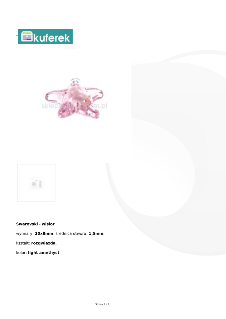 Swarovski - wisior wymiary: 20x8mm, średnica otworu: 1,5mm, kształt: rozgwiazda, kolor: light amethyst. Strona 1 z 1