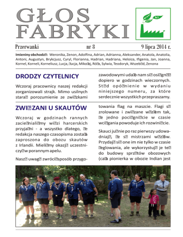 Przerwanki 9 lipca 2014 r. nr 8 DRODZY CZYTELNICY ZWIĄZANI U